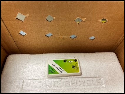 EFP develops methods for collecting accurate temperature data for your lane instead of relying on historical weather data. When performing a Performance Qualification (PQ) or during typical everyday shipments, a data logging device can be placed on the outside of your package to collect the temperature data that your package is experiencing during its transit. A secure location for the data logging device is typically directly under the top flaps of the outer carton of the cold chain packaging. This data can be crucial to ensuring that the ambient temperature profile used in a Design Qualification (DQ) or Operational Qualification (OQ) closely matches the real-world temperatures that the package will experience and assists with troubleshooting excursions in temperature.
